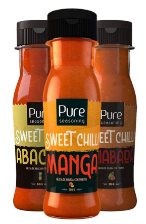 Sweet Chilli de Manga 250g: Este molho conta com uma harmonia perfeita entre um intenso sabor de manga e uma suave picância, realçando ainda mais o sabor dos pratos em que é utilizado. Combina bem com queijos como Brie, Coalho e Camembert, saladas tropicais, uma suculenta asinha de frango grelhada e sanduíches de carne de porco.