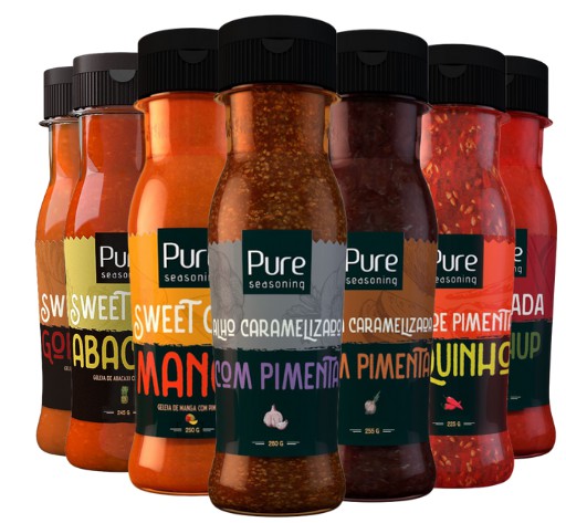 Sweet Chilli de Abacaxi 245g: Este molho uniu o sabor tropical do abacaxi com um suave fundo apimentado que fez com que o resultado final seja com algo totalmente diferenciado e delicioso. Vai muito bem com saladas, queijos tipo brie, camembert e minas frescal e uma crocante panceta.